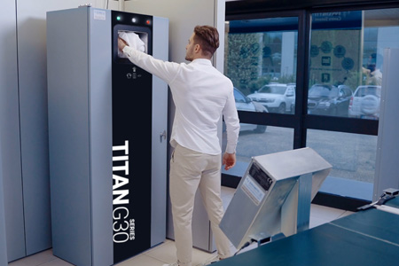 Titan is a state-of-the-art, fully automated system for the distribution and collection of folded hospital uniforms, linen, sterile kits, and accessories. Designed specifically for the healthcare sector, Titan ensures hygienic, efficient, and traceable handling of garments across small clinics and large hospital networks alike.